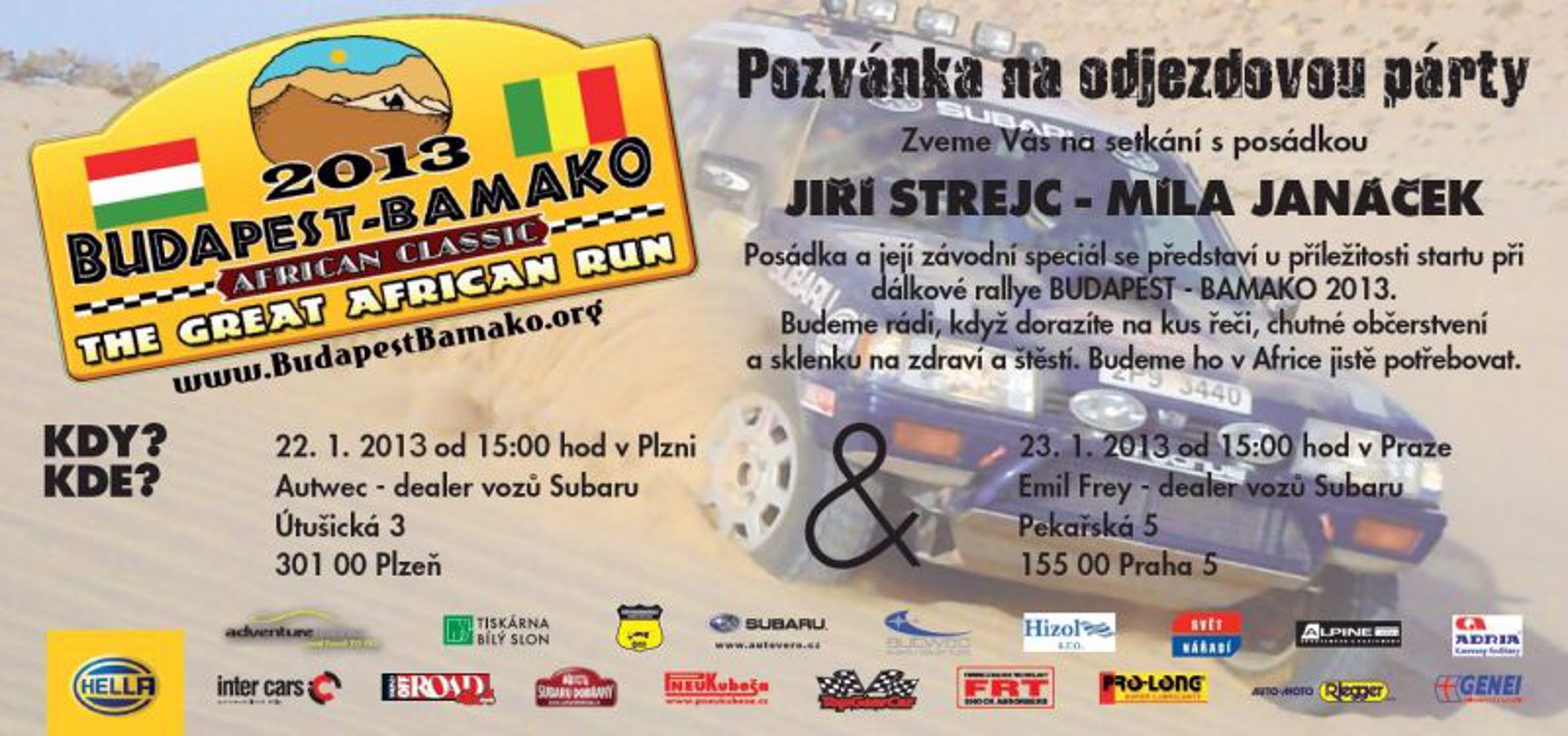 Pozvánka na odjezdovou párty Budapešť-Bamako 2013